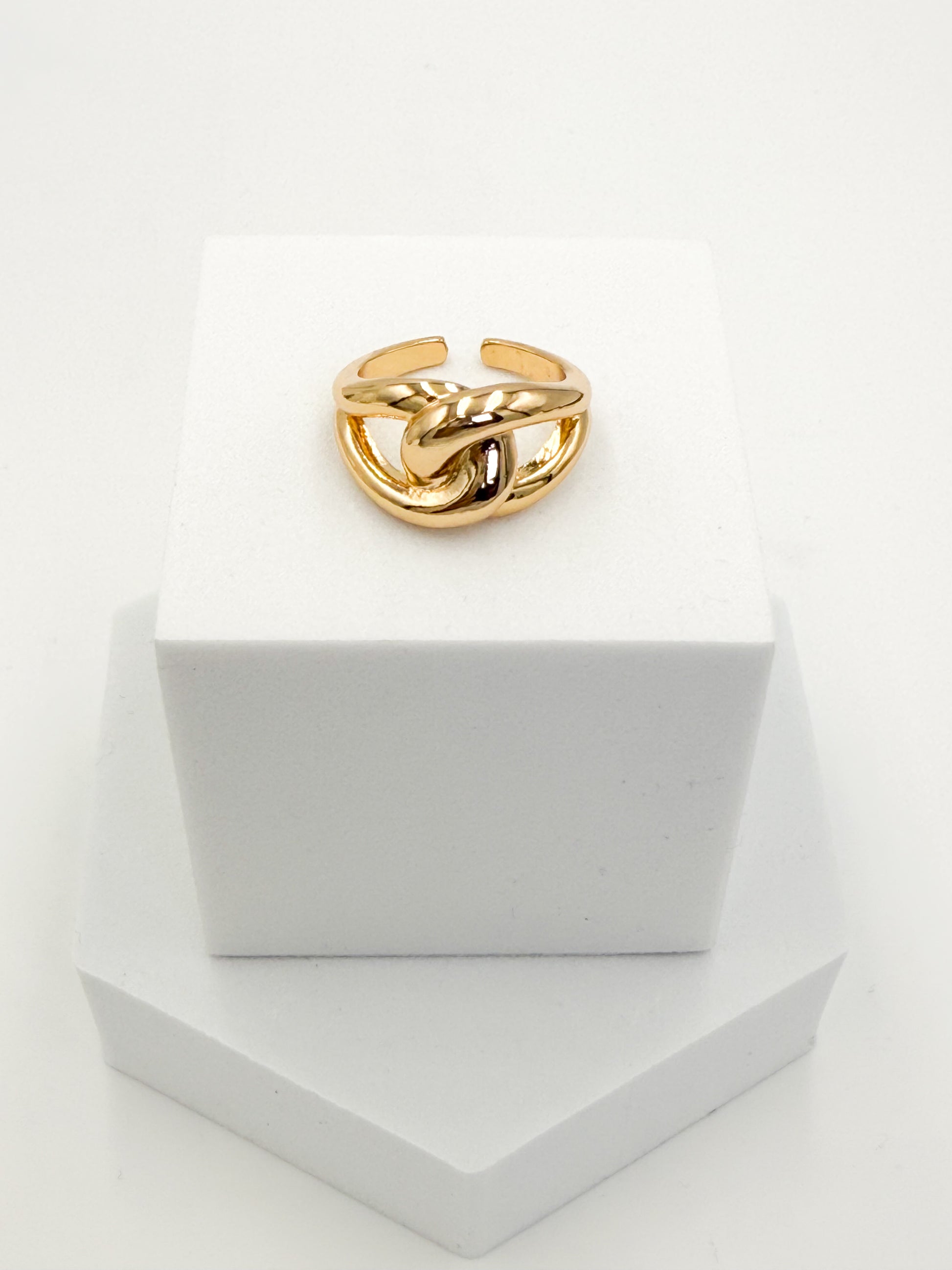 Anillo liso Dorado, baño en oro 24k, ajustable, diseño enforma de nudo.