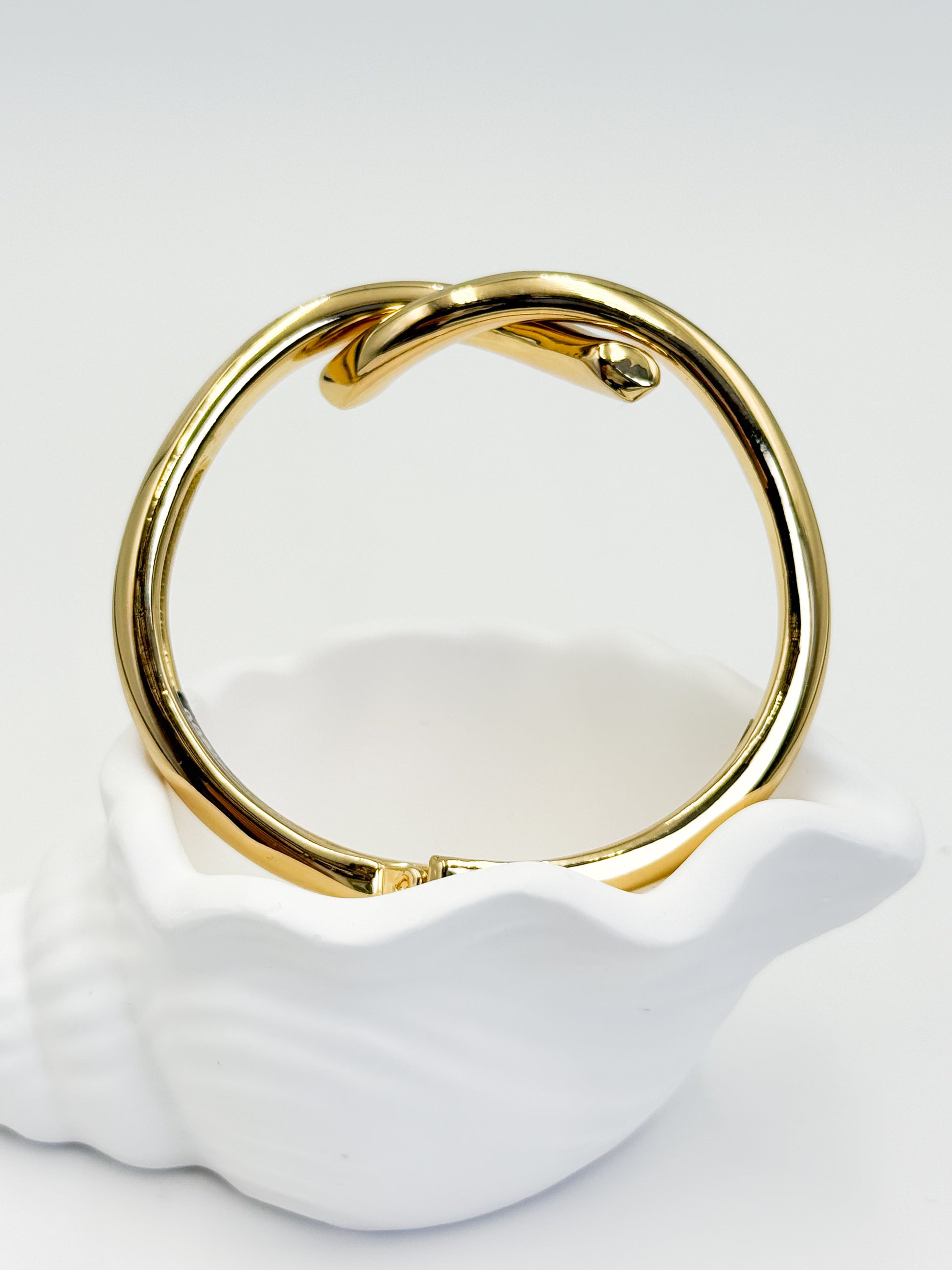 Pulsera Brazalete Dorado, Baño en oro 24k, lisa en toda la estructura finaliza en la parte superior con un semi nudo dandole un toque de sofisticacion y elegancia.